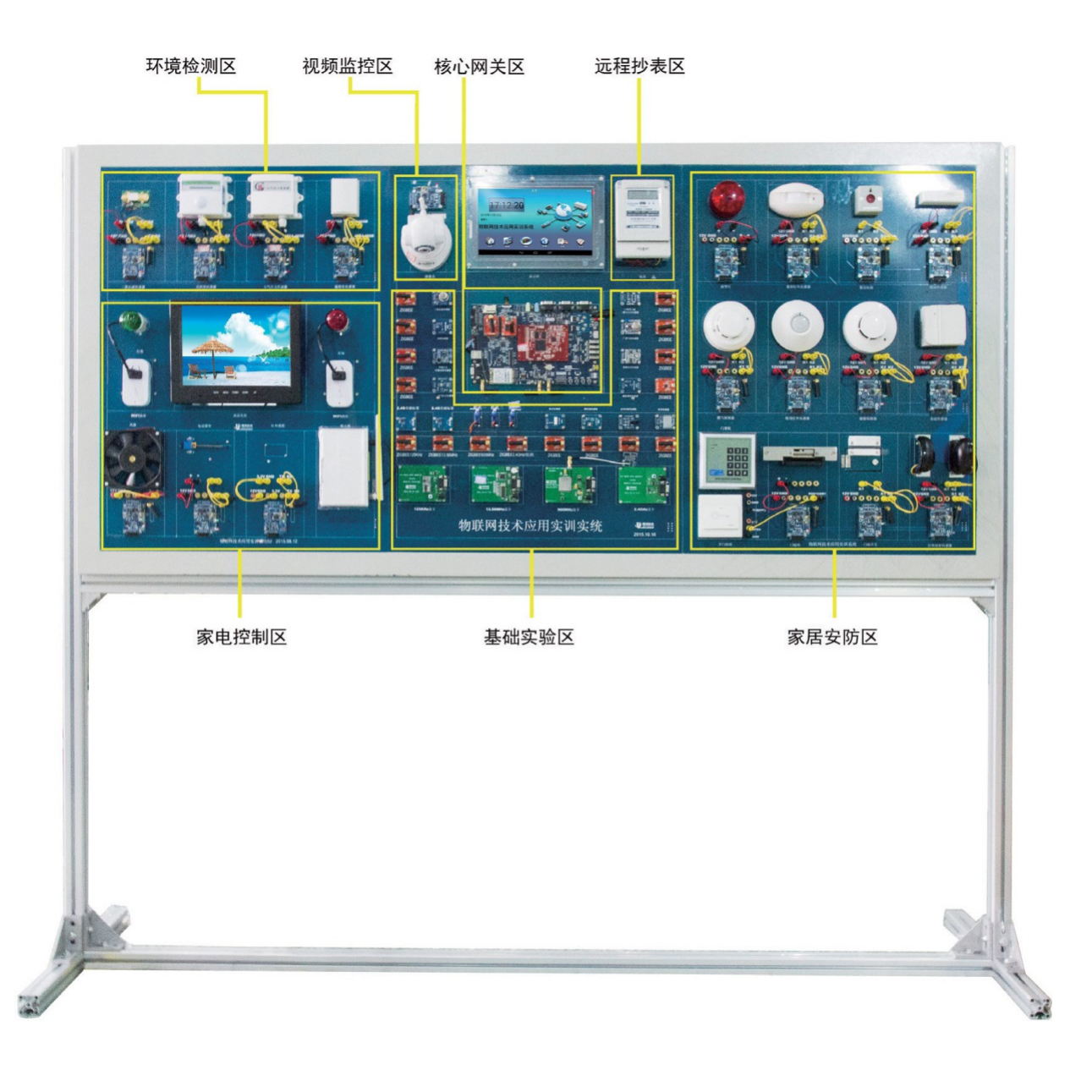 本系統的實訓區操作軟件均運行于智能網關上,包括:基礎實驗區、環境監測區、家電控制區、家居安防區、遠程抄表區、視頻監控區等等;